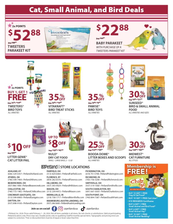 We have specials for all types of pets. Come on in and start saving today!