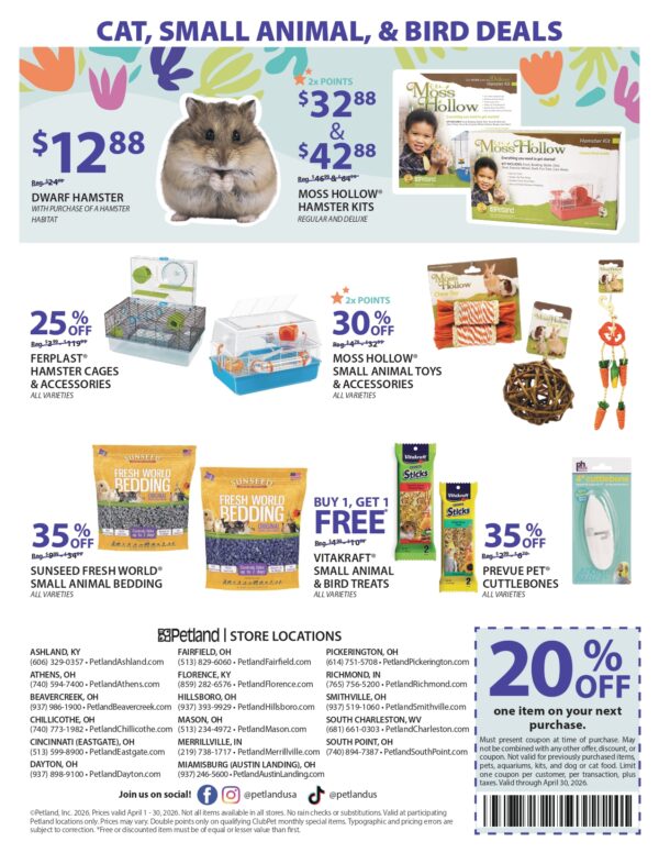 We have specials for all types of pets. Come on in and start saving today!